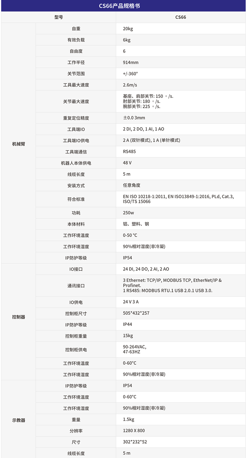 CS66作為艾利特機器人系列的中型產(chǎn)品,憑借6公斤的有效負載和914mm的工作半徑,6kg機器人將會是使用最廣泛和出貨量最多的型號,非常適合常規(guī)協(xié)作機器人應(yīng)用。CS66易于編程并且可以快速設(shè)置,在尺寸和功率之間實現(xiàn)了完美平衡。