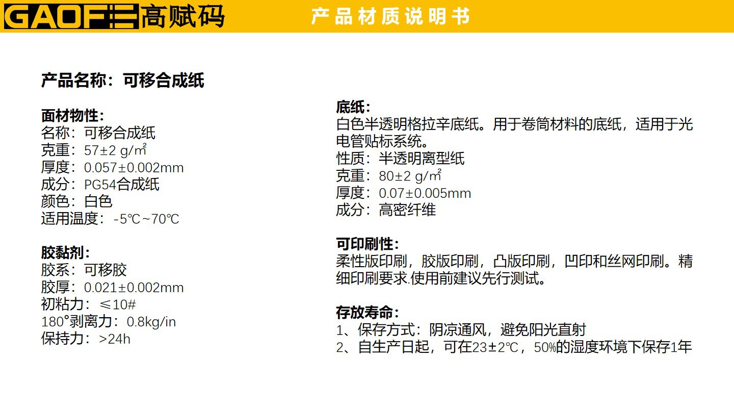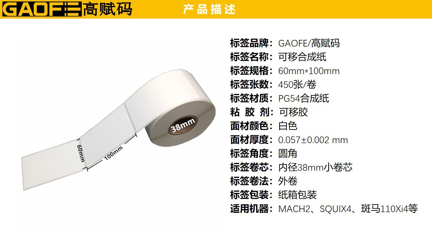 可移合成紙 60mm*100mm 防水防油標(biāo)簽 可二次使用標(biāo)簽 高賦碼