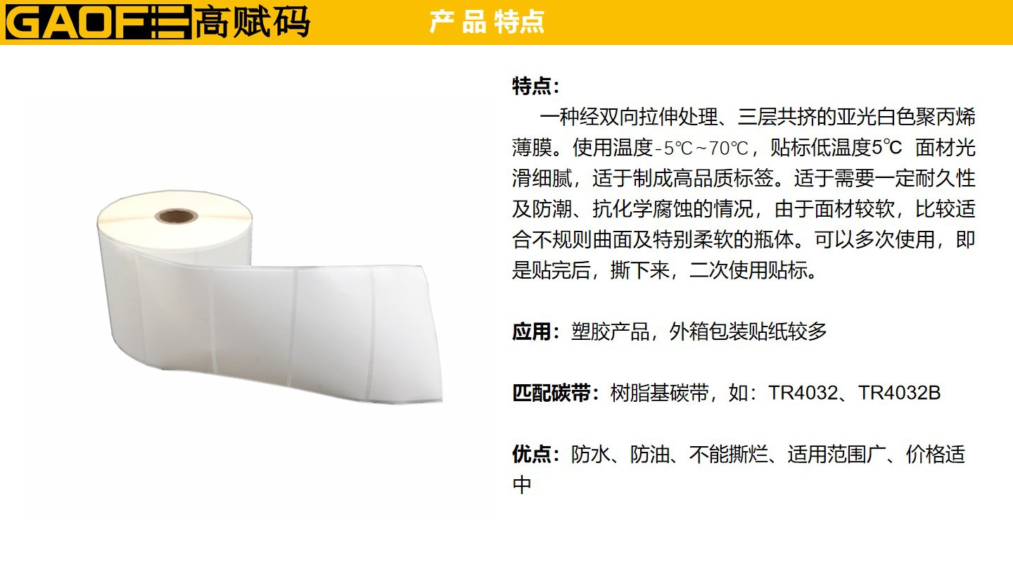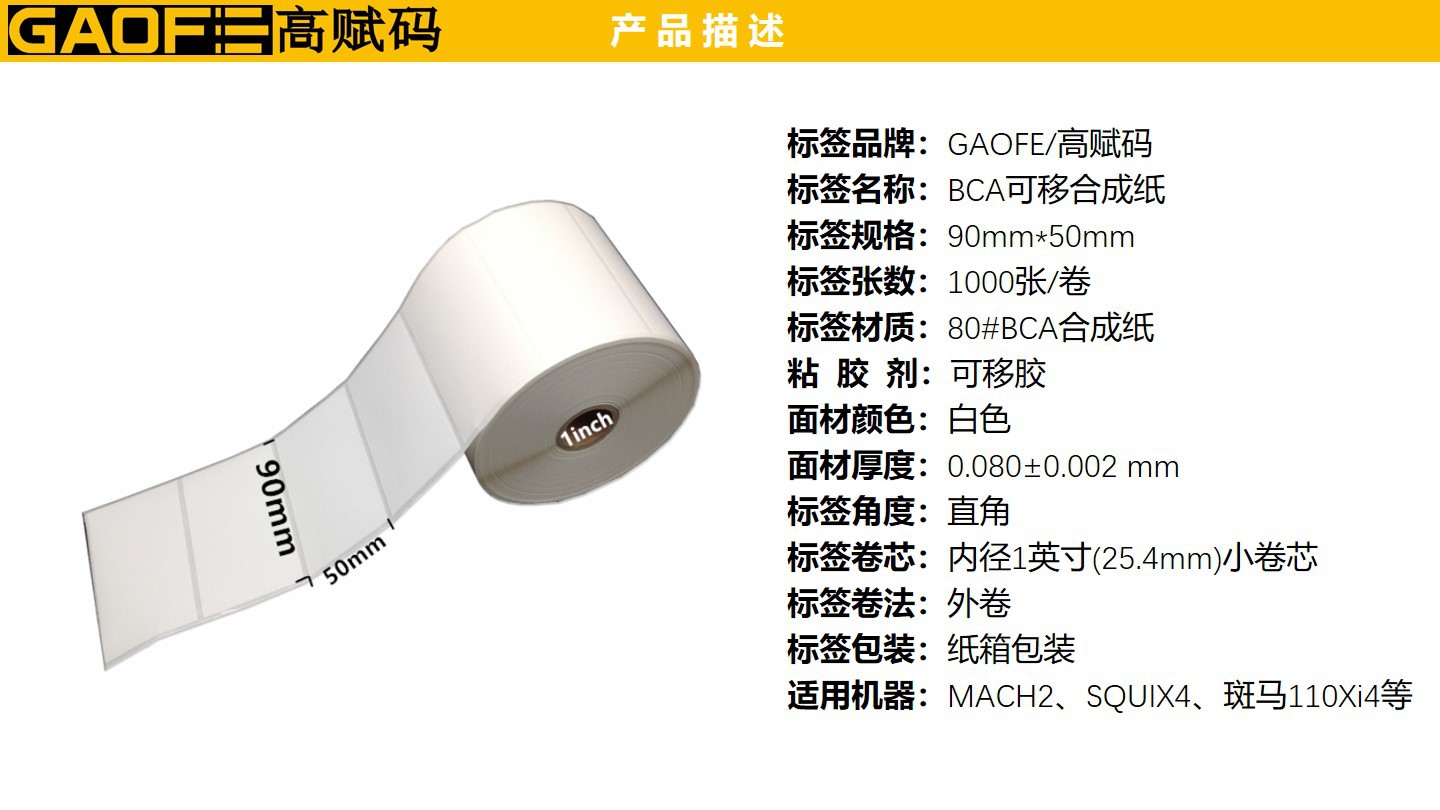 可移合成紙 可多次使用標(biāo)簽 90mm*50mm PP標(biāo)簽紙 防水防油-高賦碼