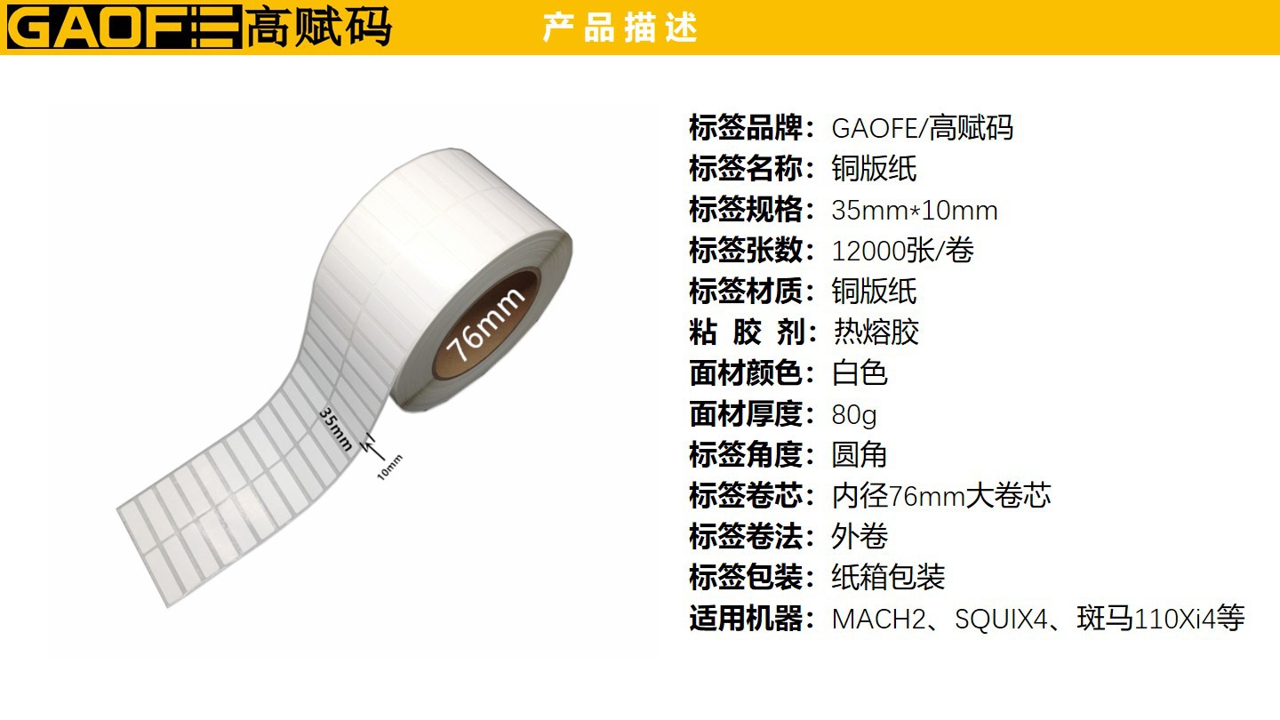 條形碼標(biāo)簽紙 銅版紙標(biāo)簽 35mm*10mm 不干膠標(biāo)簽 貼紙