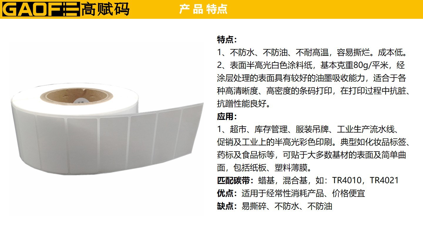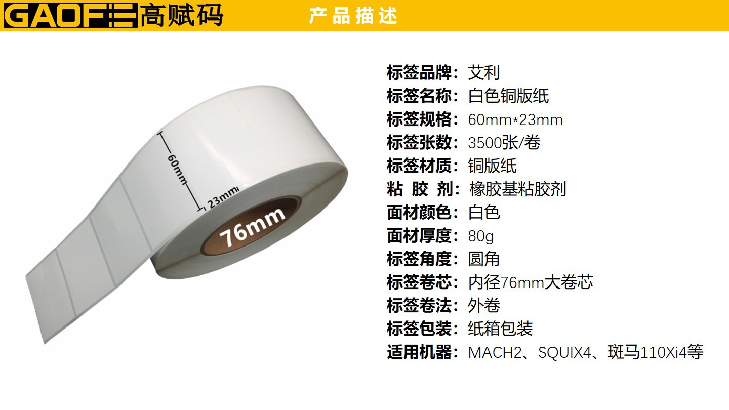 60mm*23mm 不干膠標簽紙 5209銅版紙標簽 價格標簽紙 貼紙-高賦碼