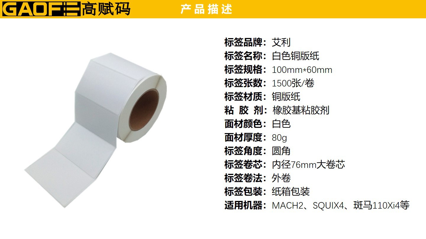 100mm*60mm條碼標簽 強粘性標簽 5209銅版紙 出貨紙標簽-高賦碼