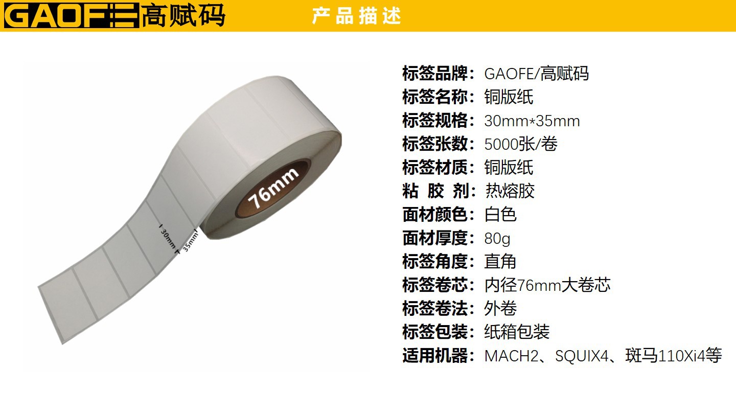 外箱貼紙 銅版紙標簽 條碼標簽 30mm*35mm 不干膠標簽 高賦碼