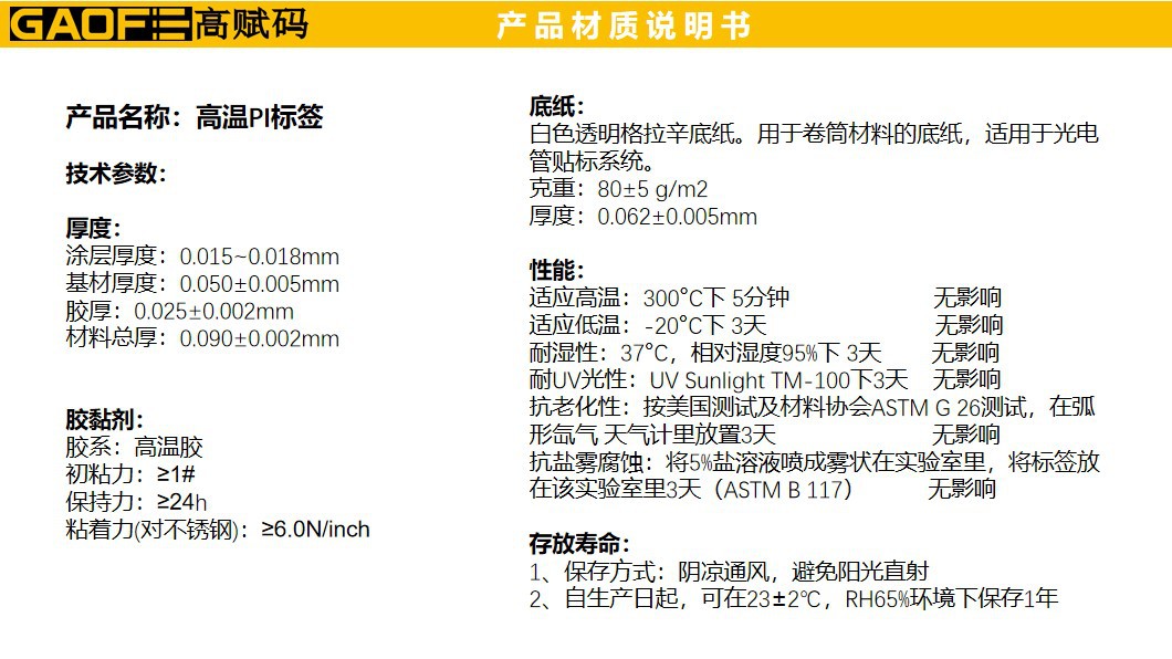 50#耐高溫啞面PI B-428G 21mm*4mm 高溫標(biāo)簽 電子行業(yè)-高賦碼