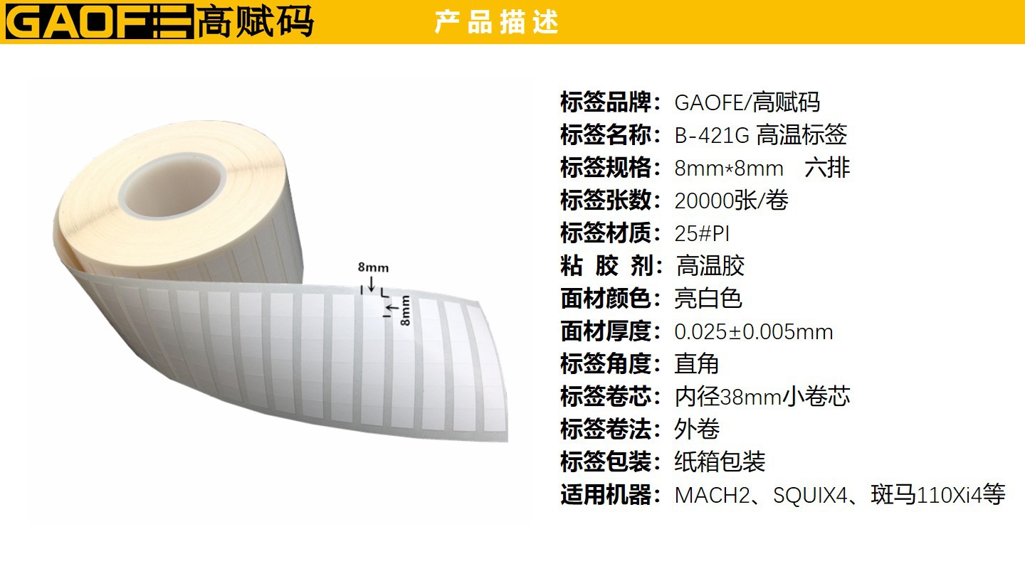 耐高溫標(biāo)簽紙 26mm*8mm圓角 可耐300度高溫 線路板標(biāo)簽-高賦碼