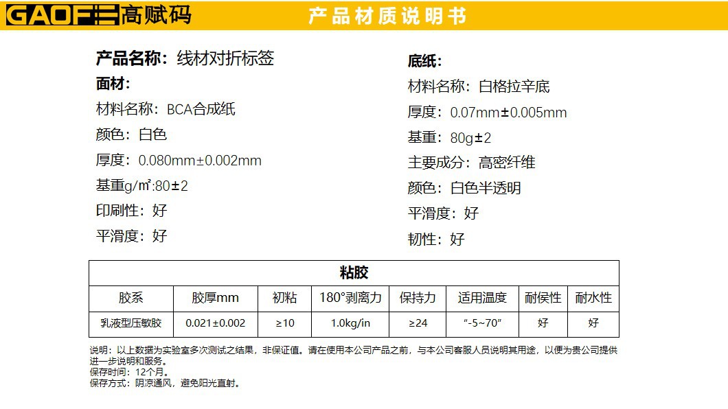 線材對(duì)折標(biāo)簽 70mm*15mm BCA合成紙標(biāo)簽 線纜標(biāo)簽-高賦碼