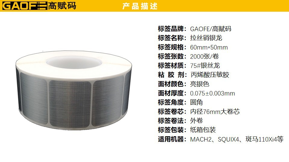 拉絲銷(xiāo)銀龍 激光打標(biāo)機(jī)專(zhuān)用標(biāo)簽 高賦碼品牌標(biāo)簽 60X50MM 定制-高賦碼