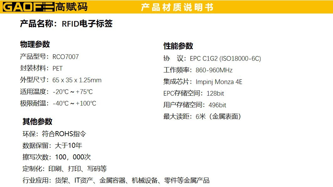 抗金屬RFID標簽 65MMx35MMx1.25MM 電子標簽 高賦碼