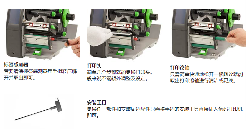 條碼打印機的機構(gòu)料件皆以高品質(zhì)的材料制作且在外型及功能上達到完美的協(xié)調(diào)性。多元的周邊配件和軟件可提供客制化的解決方案。