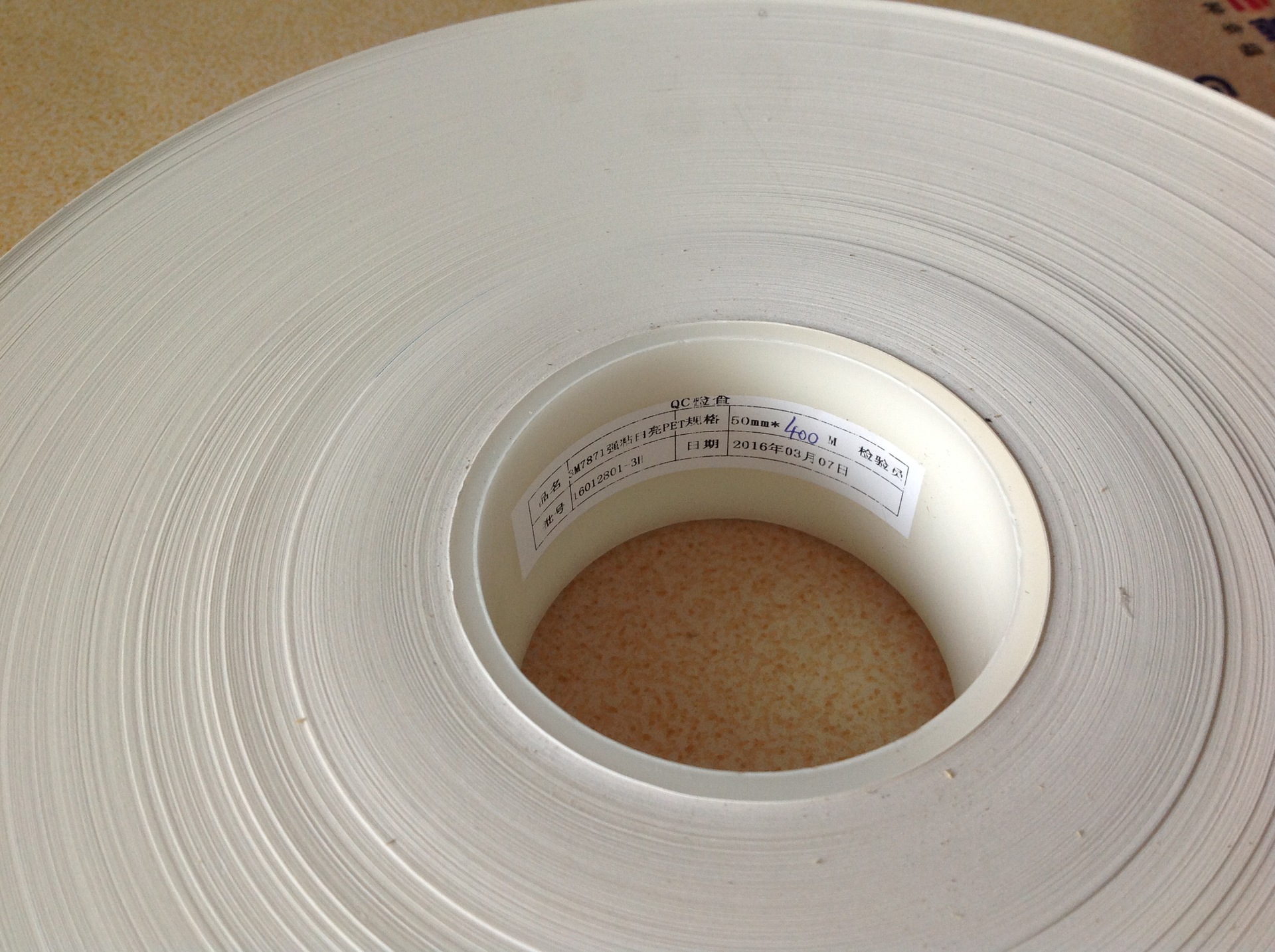 基材:25um(或50um)涂層處理聚酞亞胺薄膜,未經(jīng)涂層處理的聚酞亞胺不能滿(mǎn)足性能要求、涂層處理能更加地滿(mǎn)足工藝上所需的打印條碼性以及對(duì)材料顏色與光澤度的要求。