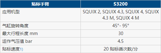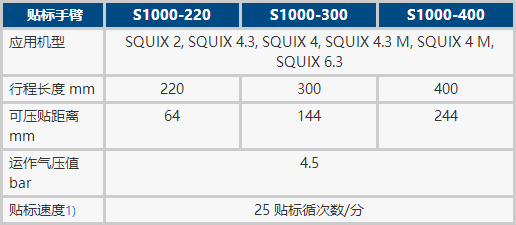 使用壽命、預(yù)先剝離功能、氣壓計、穩(wěn)定度和支撐氣流等說明請參照貼標(biāo)手臂 S1000。