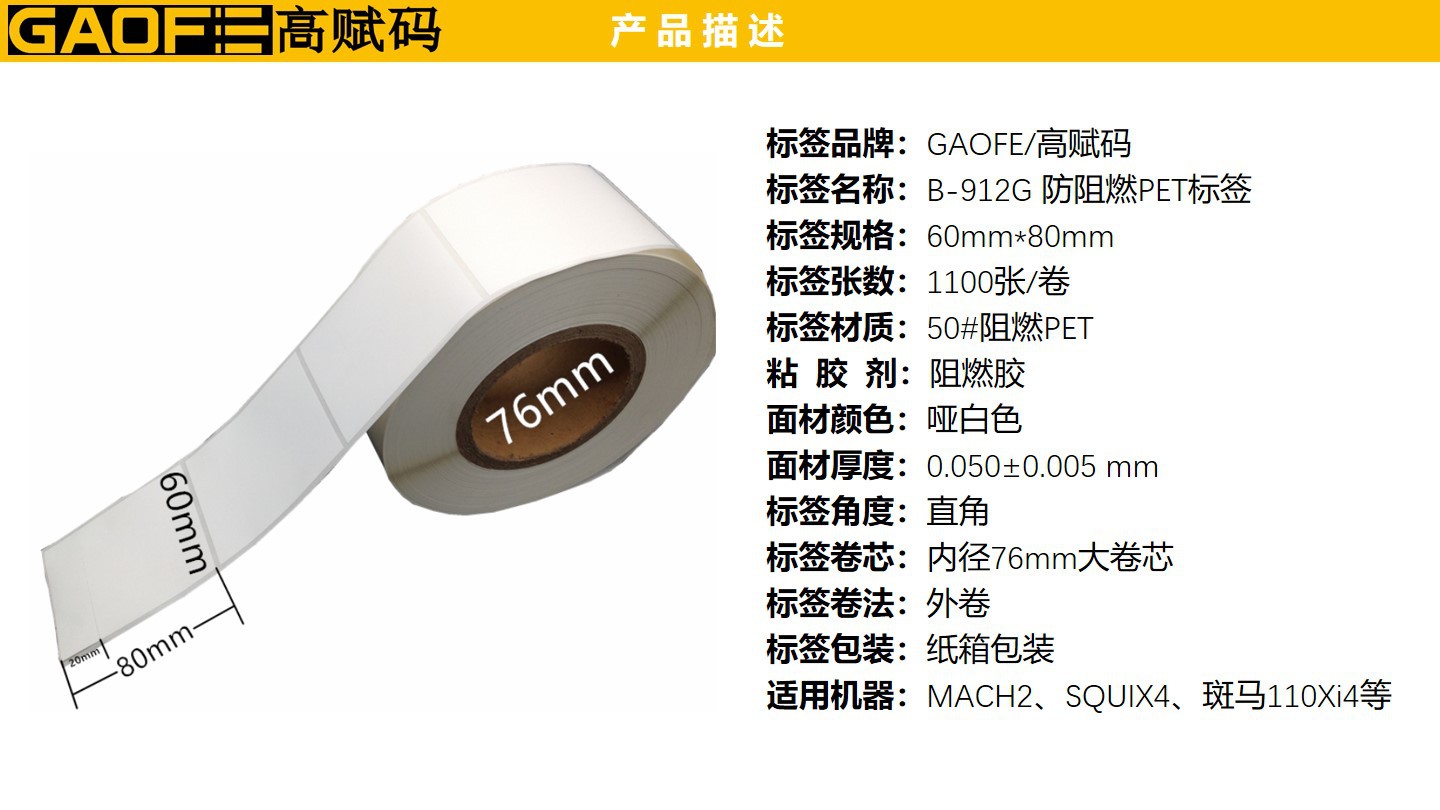 防阻燃標(biāo)簽B-912G 80mm*(60+20)mm PCB板防火標(biāo)簽 條碼標(biāo)簽高賦碼
