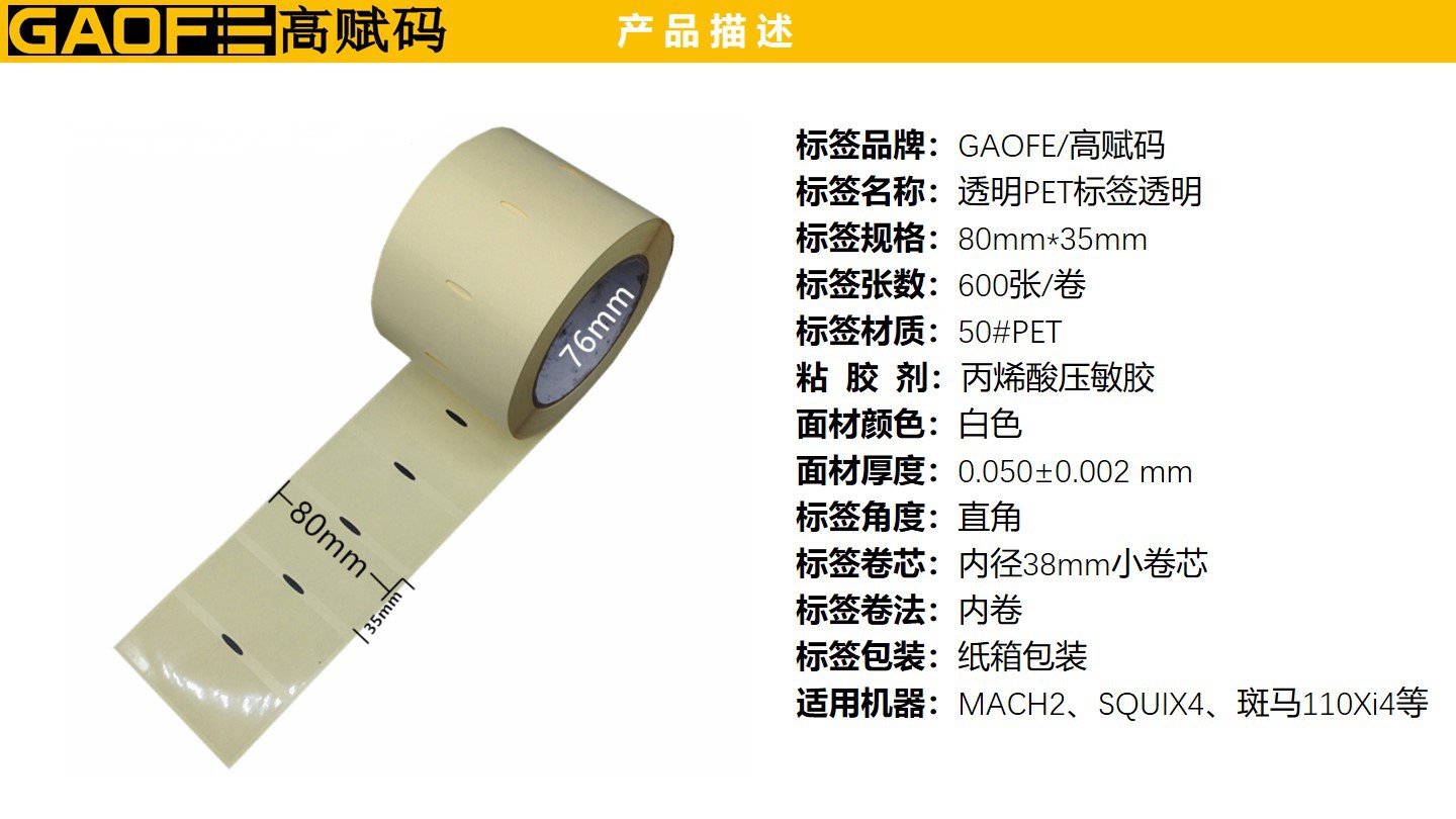 加粘透明PET 80mm*35mm PET標(biāo)簽 白色防水標(biāo)簽 不干膠標(biāo)簽 高賦碼