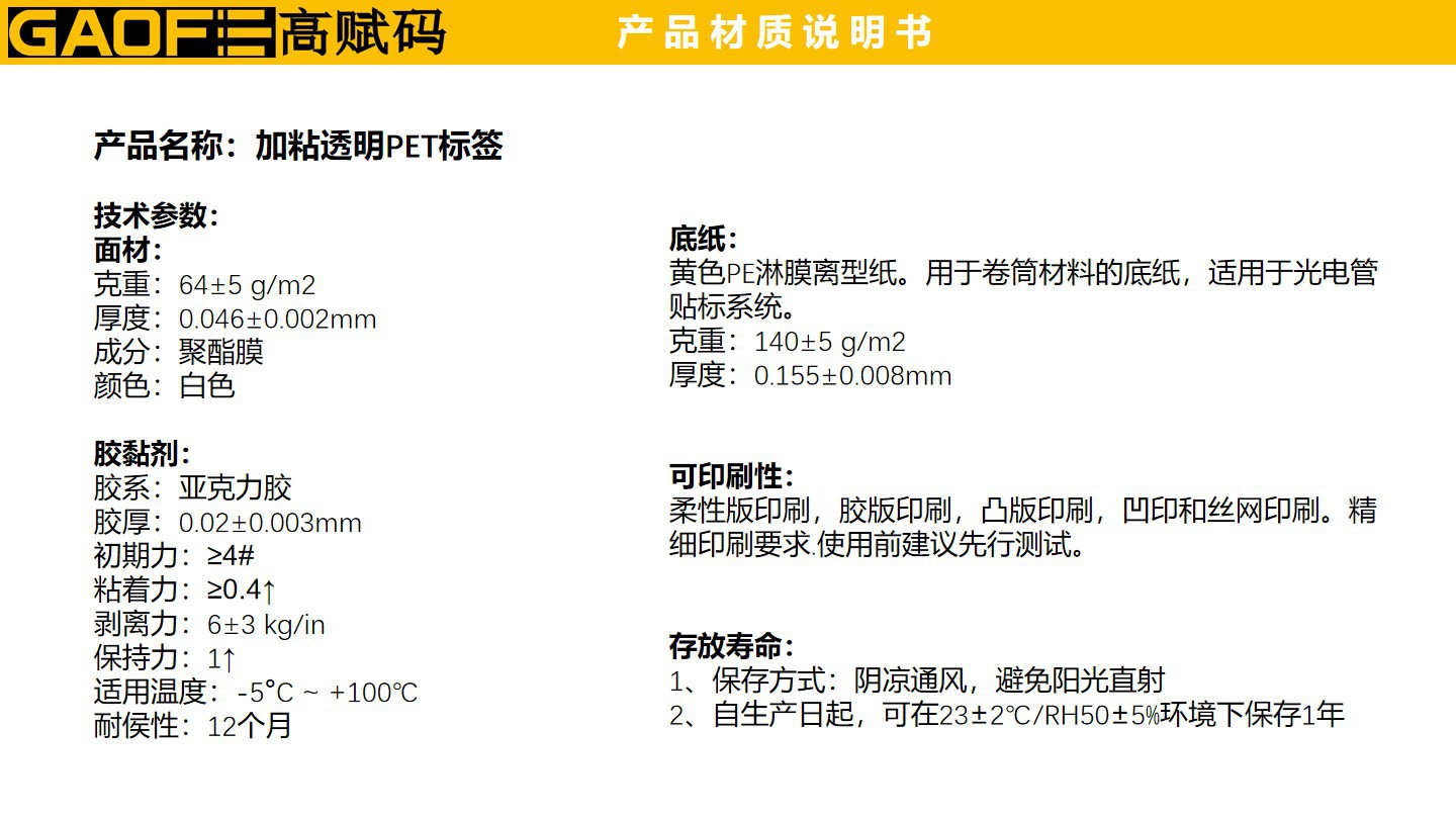 產(chǎn)品名稱:加粘透明PET標(biāo)簽