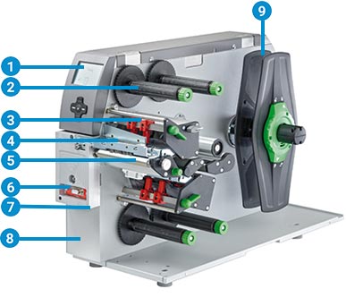 因應(yīng)不同標(biāo)簽寬度不需重新調(diào)整打印頭。針對(duì)較窄及較薄的標(biāo)簽配有專用打印滾軸。