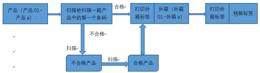 (5)如特殊情況,無需等待外箱標簽數(shù)量為b時,可強制打印棧板標簽,系統(tǒng)記錄?!缟衔缟a(chǎn)外箱B1(打印),下午生產(chǎn)外箱B2,要求可以合并棧板(B1+B2)后重新覆蓋打印標簽,系統(tǒng)記錄