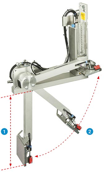 2.擺臂長(zhǎng)度定義為達(dá) 90° 的貼標(biāo)位置(標(biāo)簽下邊緣)在 Hermes+ 機(jī)座區(qū)域下方