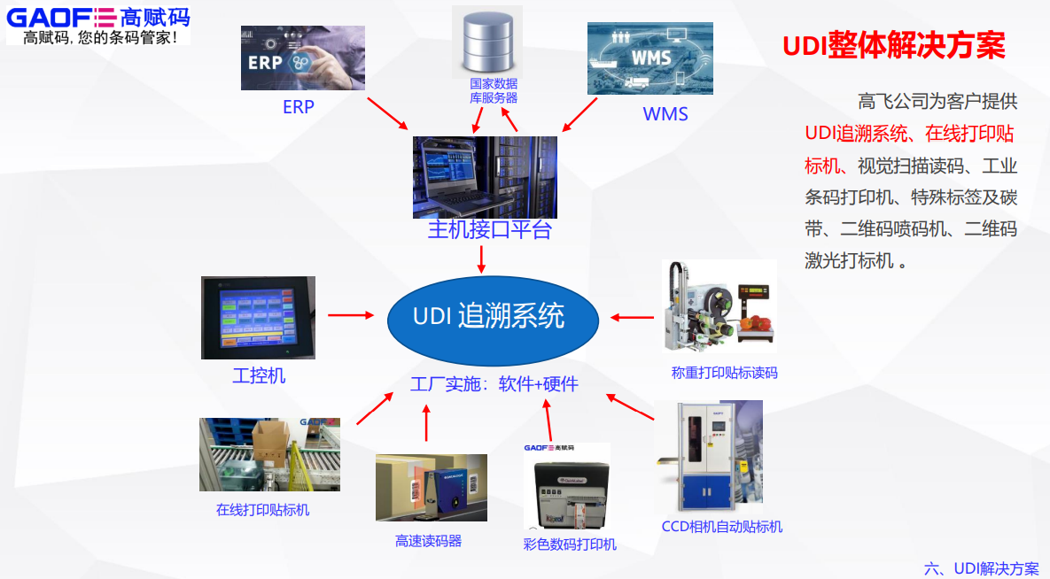 高賦碼作為專業(yè)的條碼管家,針對(duì)UDI標(biāo)識(shí)碼可以提供全面的UDI方案,可協(xié)助企業(yè)申請(qǐng)DI碼,幫助企業(yè)進(jìn)行UDI編碼,同時(shí)有專業(yè)的設(shè)備與軟件進(jìn)行掃碼打碼,讓企業(yè)的UDI之路更加精簡(jiǎn)順暢。